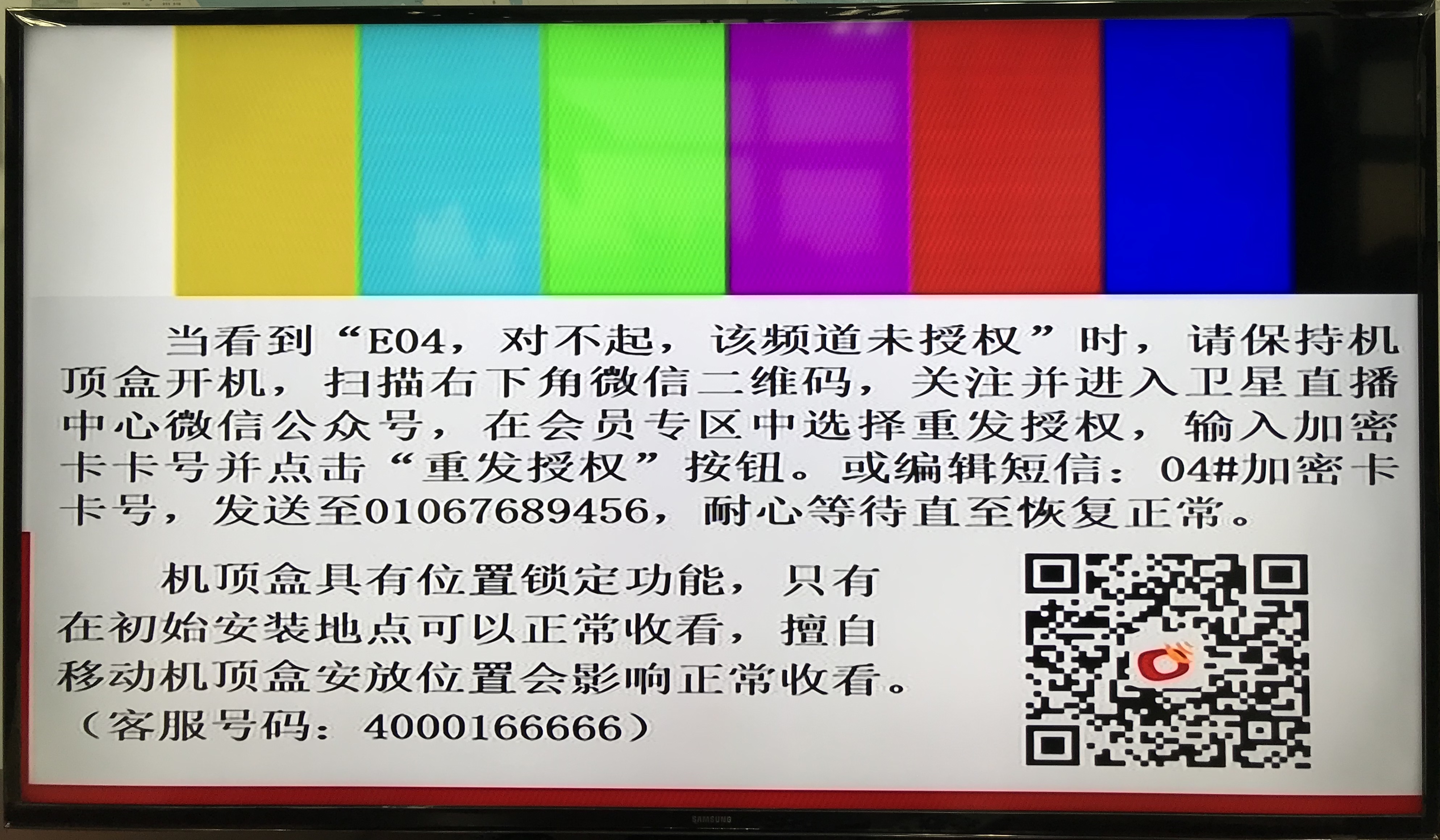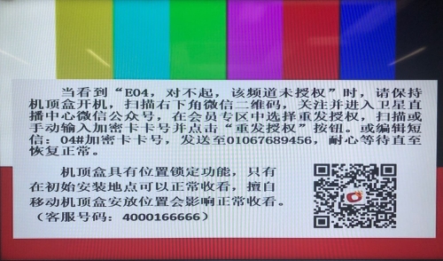 新春將至,長期在外打拼的農(nóng)民工朋友返鄉(xiāng)過年,由于長期未開機看電視,當您打開直播衛(wèi)星戶戶通時,電視畫面上可能會出現(xiàn)“E04,該頻道未授權”提示信息,您不用著急,一種快速自助解決E04問題的方法來啦!